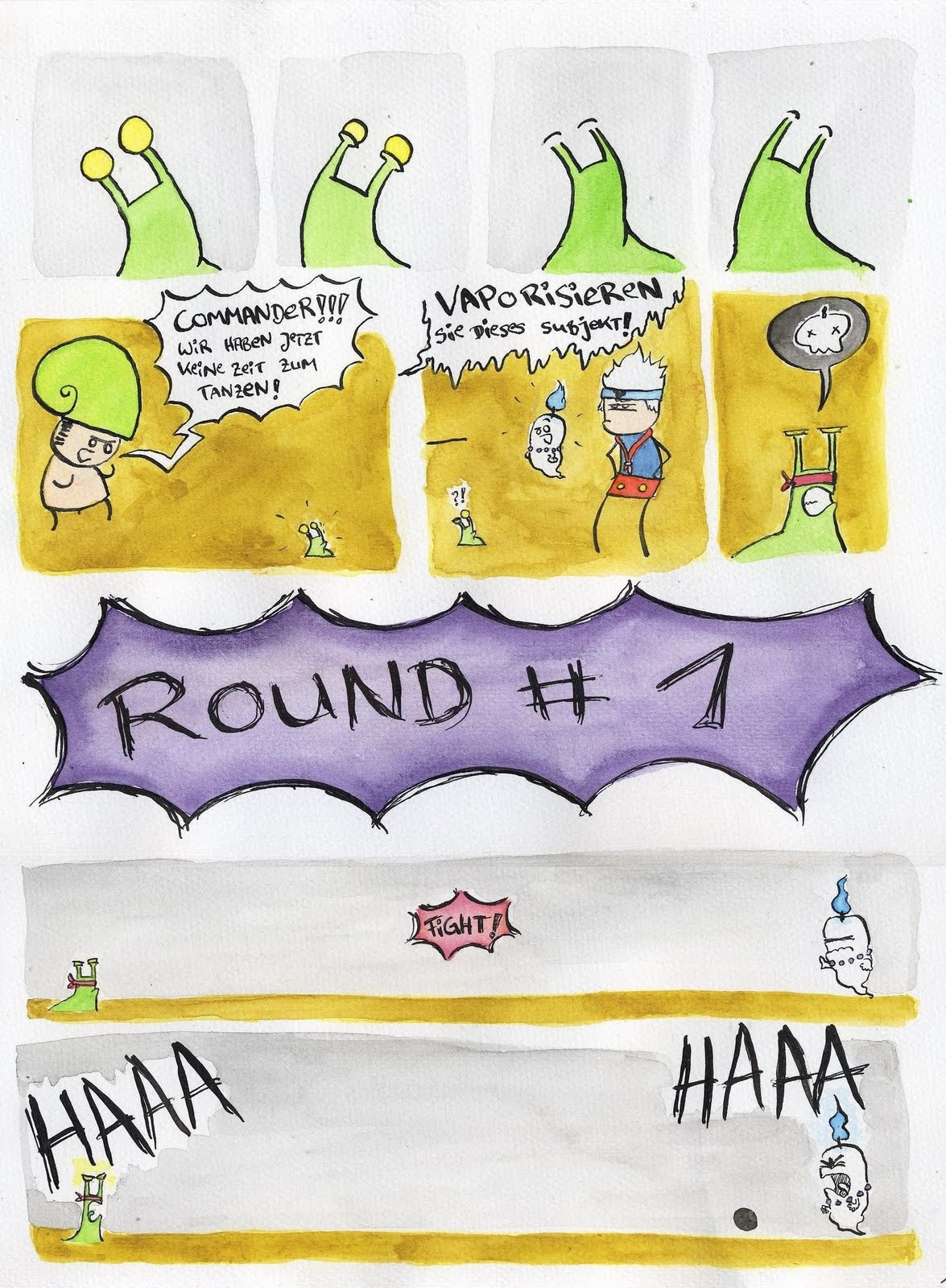 der eigentlich Beitrag ist noch in der Mache.. ich habe mich ein wenig an der Länge des Comics verhoben.. (5 DIN A 4 Seiten... skizzieren, tuschen, lettern, radieren, aquarellieren... ein Berg von akribscher Arbeit...)